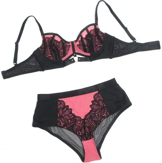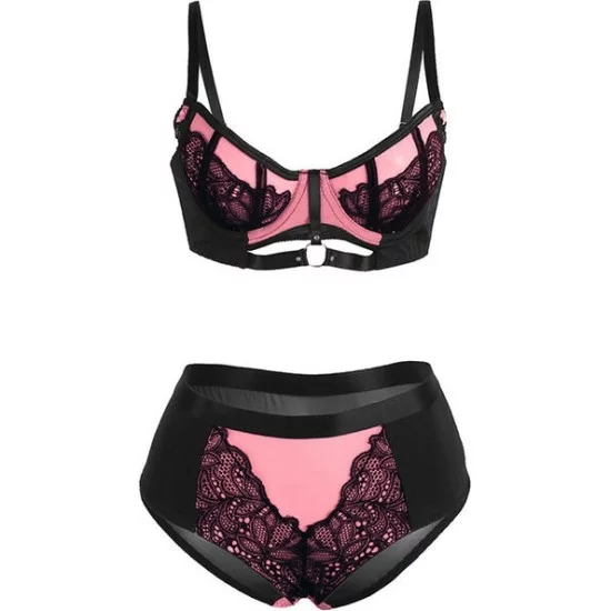 Subblime Sets SUBBLIME - 955571 PINK PATENT LEATHER MESH ZIPPER BRA SET S/M