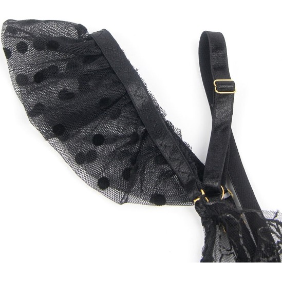 The garter belt, with lace details and adjustable straps to hold your favorite stockings, adds an extra touch of seduction, making this set the perfect option for a special night. Meanwhile, the panty complements the piece with a flirtatious and comfortable design, which combines transparencies and lace details for an irresistible finish.