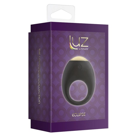 Light up your love life with Eclipse from the Lovelight collection by LUZ by TOYJOY. Eclipse is a sleek vibrating cock ring with 7 exciting settings. Its contemporary and sleek design is made of premium soft-touch silicone and is one size fits most. The Eclipse is USB rechargeable (charging cable included), waterproof, and features a stylish multi-color LED light that lets you set the perfect mood for intimate, sensational fun in the dark. Specs